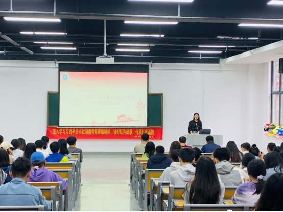 为深入学习习近平总书记在湖南考察讲话精神,生动讲好经典红色故事,努力提升青年团员的思想政治素质,9月29日中午,金融专修学院团总支在S8-106举行“深入学习习近平总书记湖南考察讲话精神,讲好红色故事,传承红色基因”主题团日活动。金融专修学院团总支书记陈光荣、专职组织员罗勇、辅导员常茨坪参加活动并指导工作,院团总支学生会干部、班级团支部书记、团员代表近200人参加主题团日活动。